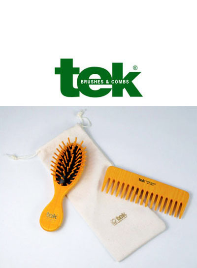 SPAZZOLA OVALE DA BORSETTA E PETTINE GIALLI + CUST. IN COTONE